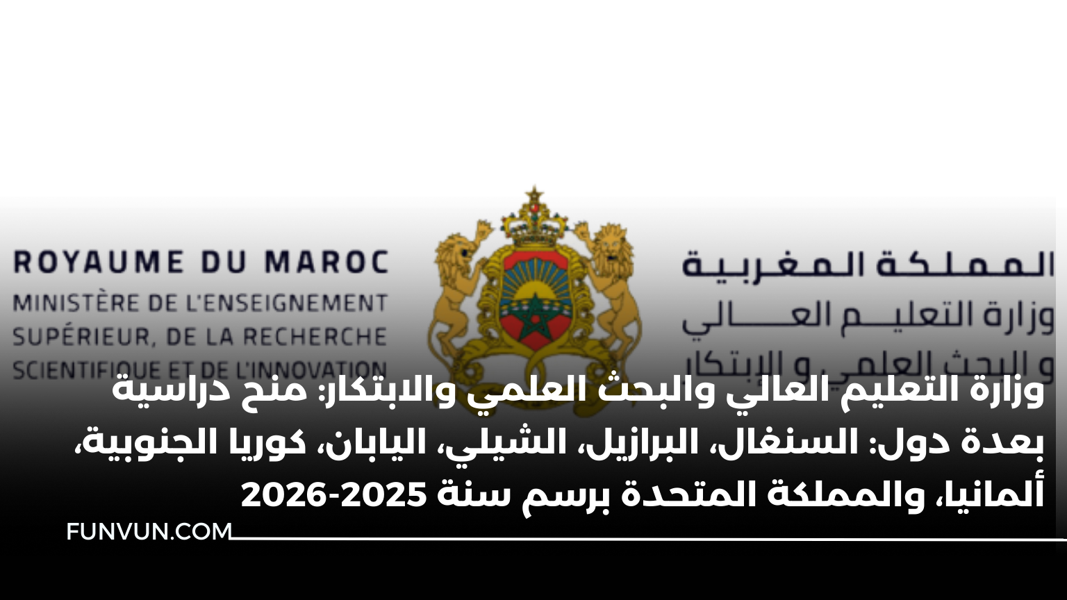 تعلن وزارة التعليم العالي والبحث العلمي والابتكار عن فتح باب الترشيح أمام الطلبة المغاربة للاستفادة من مجموعة من المنح الدراسية الدولية الممولة بالكامل أو جزئيًا، برسم الموسم الجامعي 2025 – 2026، وذلك في إطار اتفاقيات التعاون والشراكات التي تجمع المغرب بعدد من الدول الصديقة.