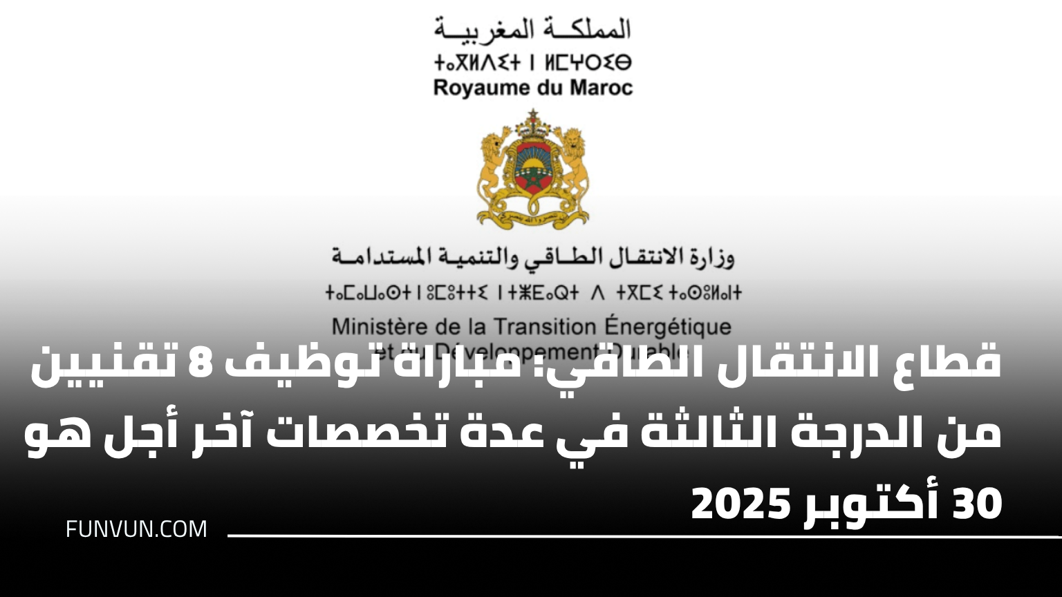 مباراة توظيف 8 تقنيين من الدرجة الثالثة بوزارة الانتقال الطاقي والتنمية المستدامة 2025