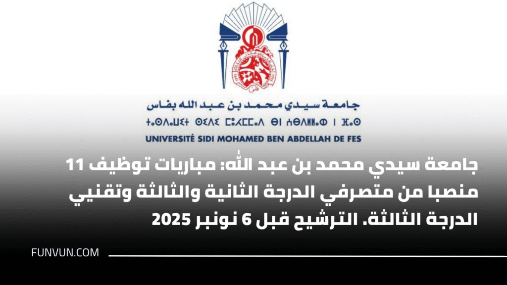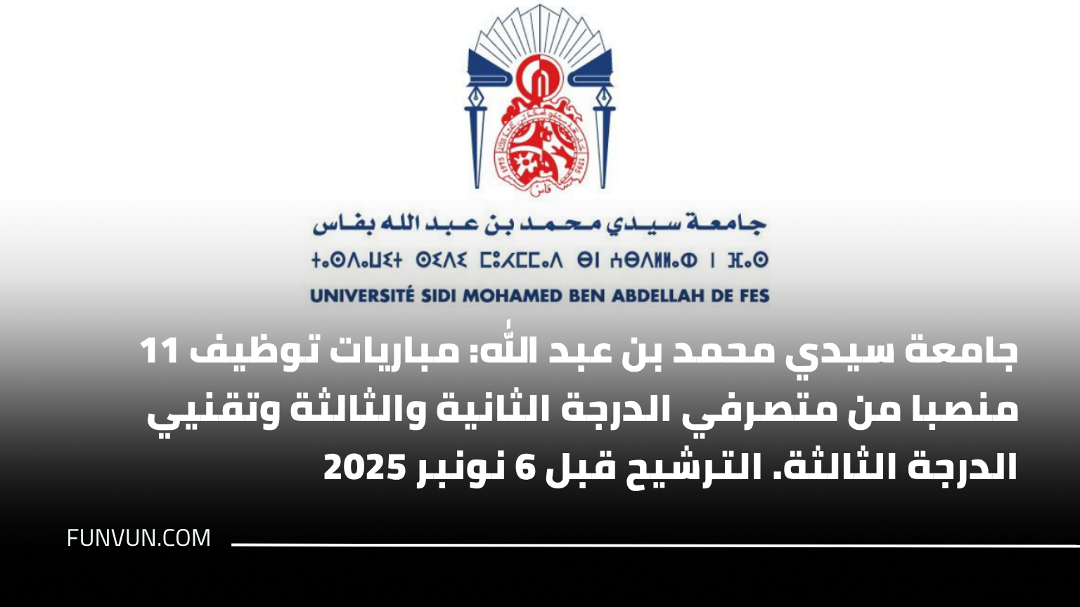 أعلنت جامعة سيدي محمد بن عبد الله بفاس عن تنظيم مباريات توظيف لفائدة المؤسسات الجامعية التابعة لها، دورة 16 نونبر 2025، وذلك في مجموعة من التخصصات والإطارات الإدارية والتقنية.