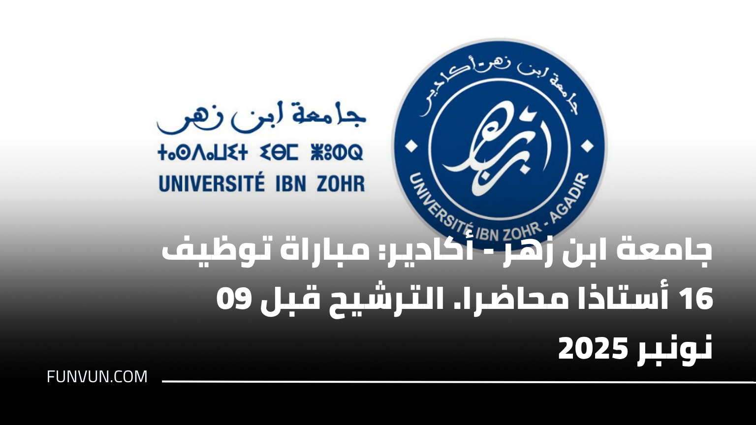 جامعة ابن زهر بأكادير تعلن عن مباريات توظيف 16 أستاذًا محاضرًا برسم دورة نونبر 2025