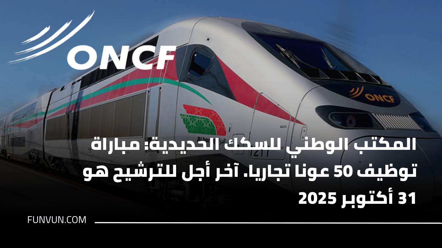 أعلن المكتب الوطني للسكك الحديدية (ONCF) عن تنظيم مباراة توظيف لفائدة وكلاء تجاريين للقطارات (Agents Commerciaux Trains)، وذلك في إطار مواكبة مخططه التنموي وتعزيز موارده البشرية في القطاع التجاري للنقل السككي.