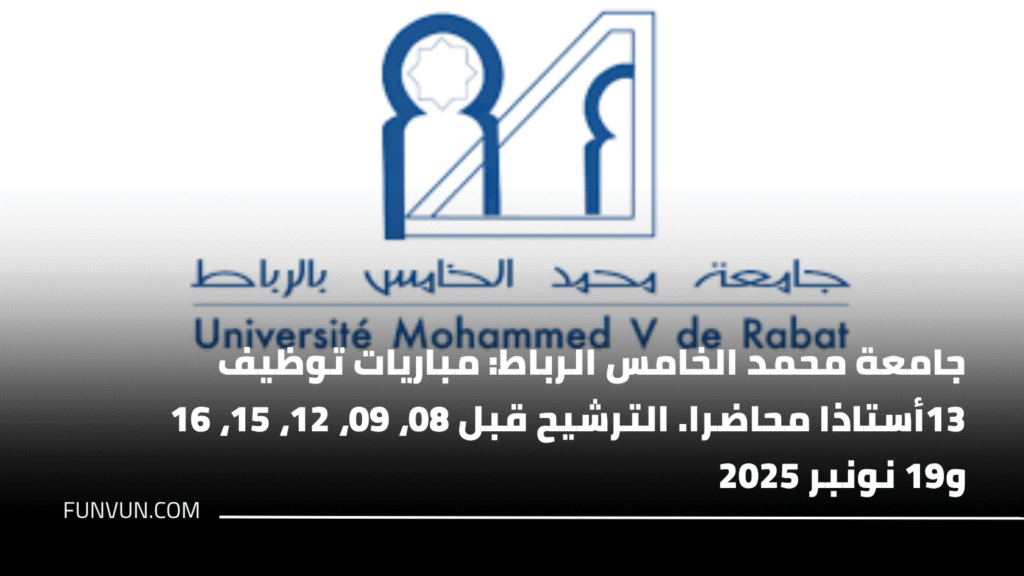 جامعة محمد الخامس الرباط: مباريات توظيف 13أستاذا محاضرا. الترشيح قبل 08، 09، 12، 15، 16 و19 نونبر 2025